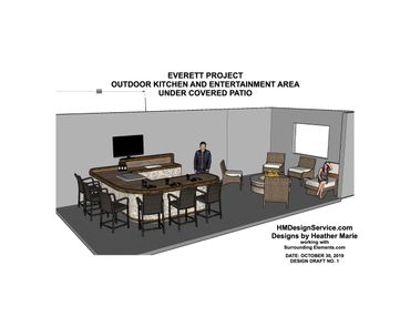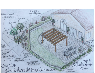 HAND SKETCH LEVEL ONE-B: This level provides additional color added and defining notes. It is a great was to give you a visual of your ideas at a lessor cost. I listen and ask questions to understand who you are and how you like to entertain in your backyard space. I will make helpful suggestions along the way to get you the best design for your space.